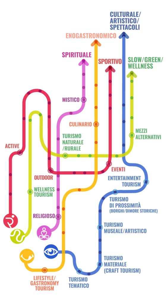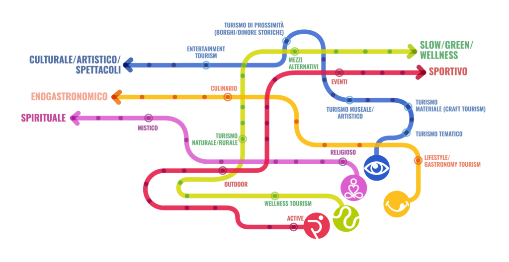 Cinque aree, cinque sensi, cinque percorsi che individuano altrettanti profili di viaggio e molteplici destinazioni possibili. Cinque forme di turismo esperienziale non convenzionale che s’intrecciano con la comunicazione e i media.